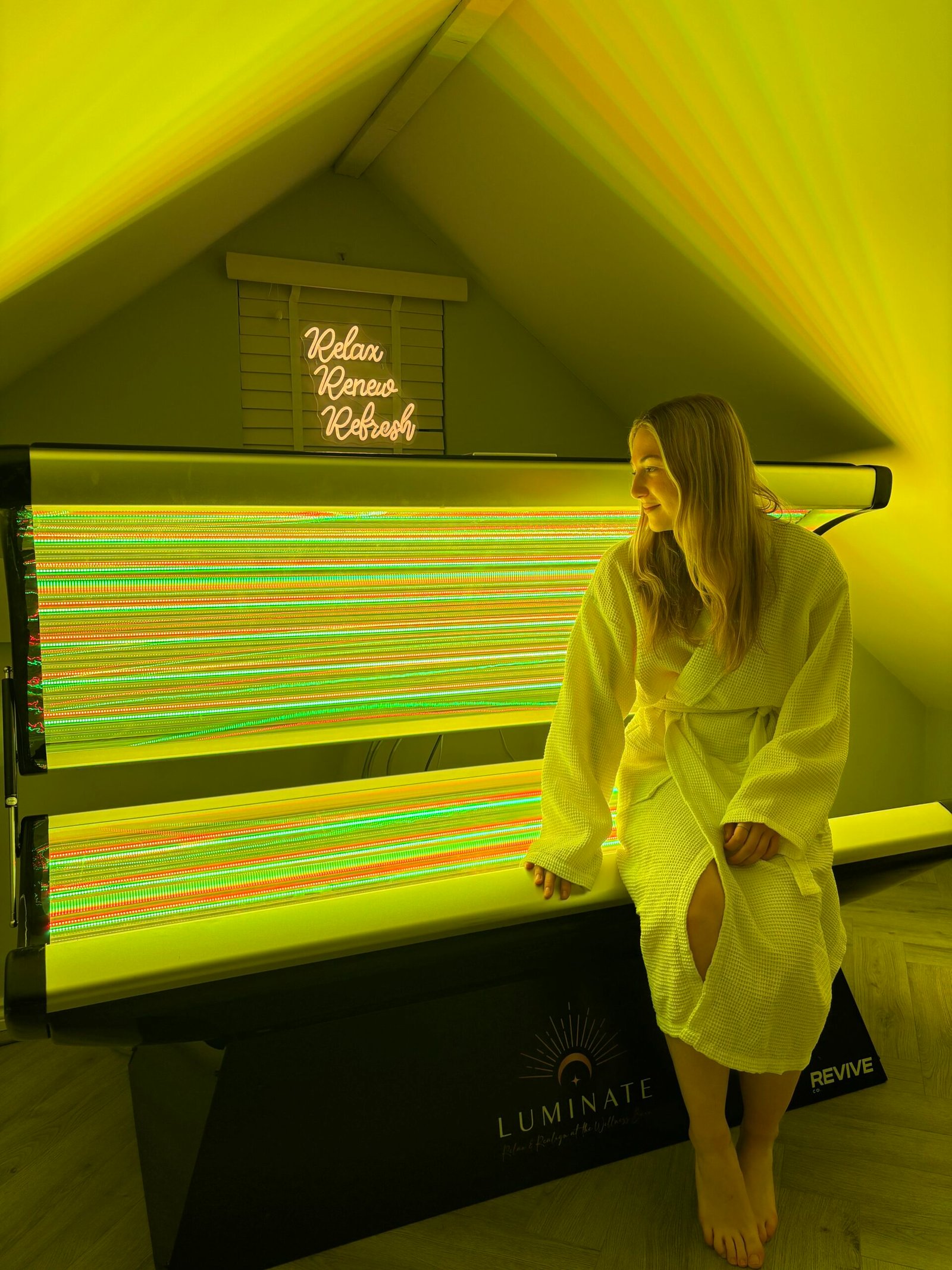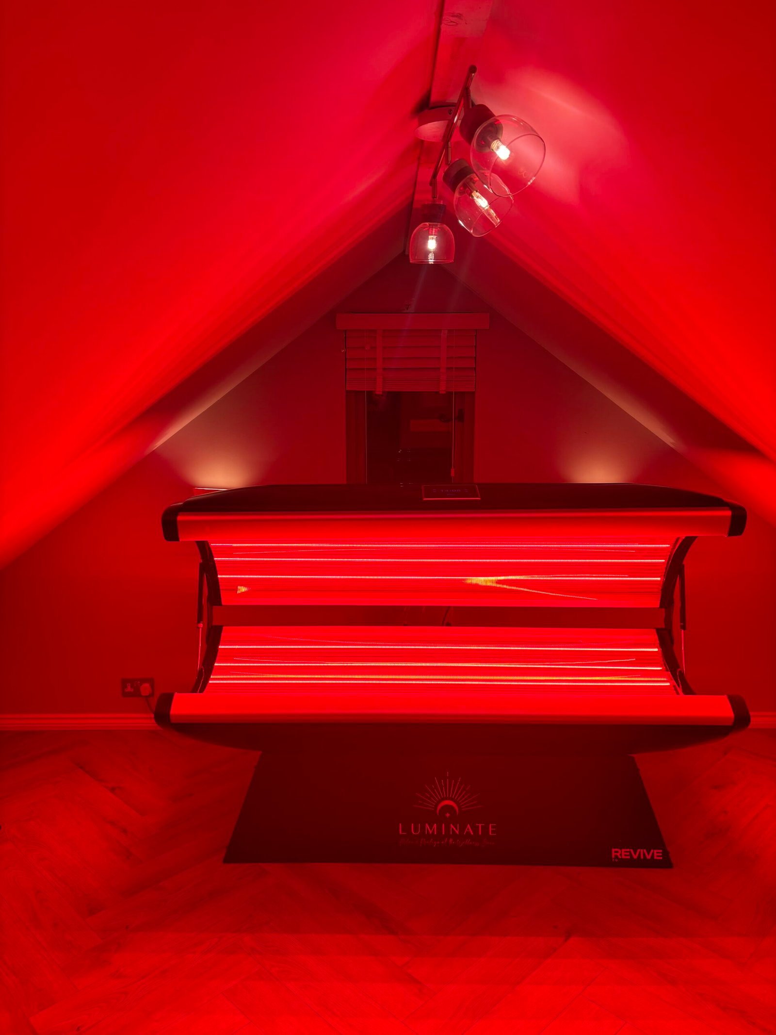At Luminate, we also offer the Amplify Infrared Sauna, which works differently but complements red light therapy beautifully.